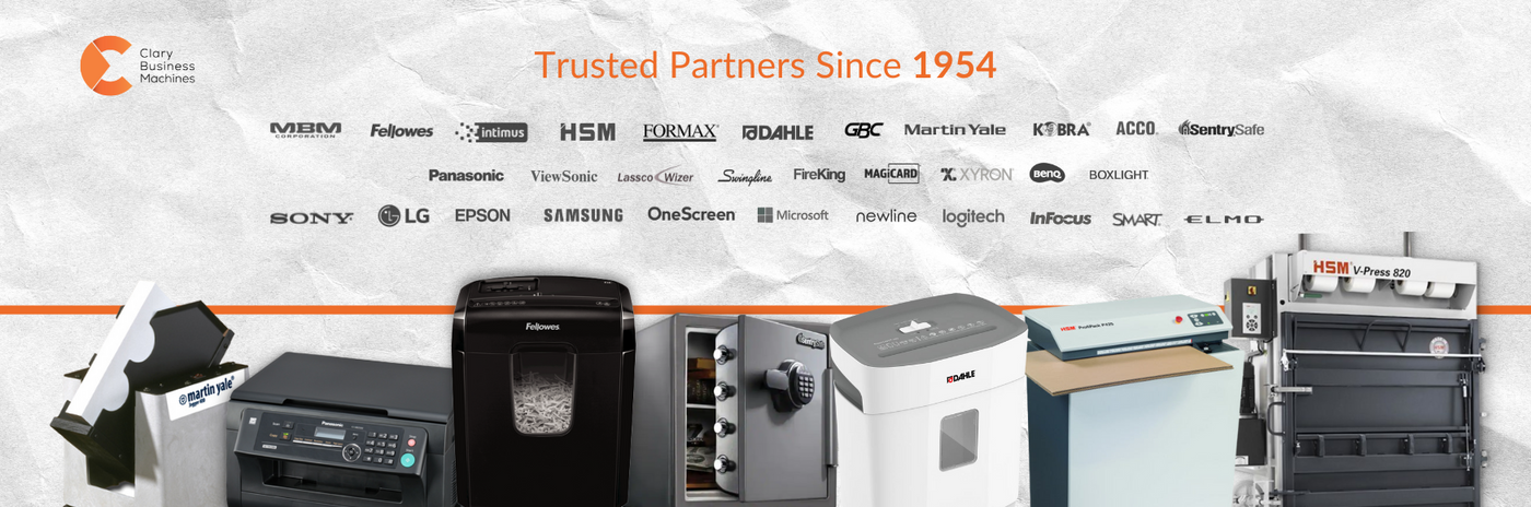 Since 1954, Clary has been a trusted leader in providing office equipment for every need. We partner with top brands to offer a comprehensive range of products, including office equipment, data destruction equipment , paper shredders, paper handling equipment, mailroom equipment, business supplies, and cutting-edge technology solutions. Clary has everything you need to streamline workflows and boost workplace productivity.