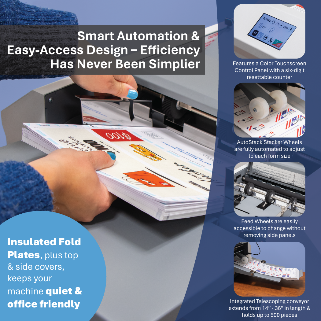 Advanced software supports customized fold types and various paper sizes for maximum flexibility. The FD 2056 is the smart solution for organizations seeking a fast, dependable way to streamline mailing workflows.