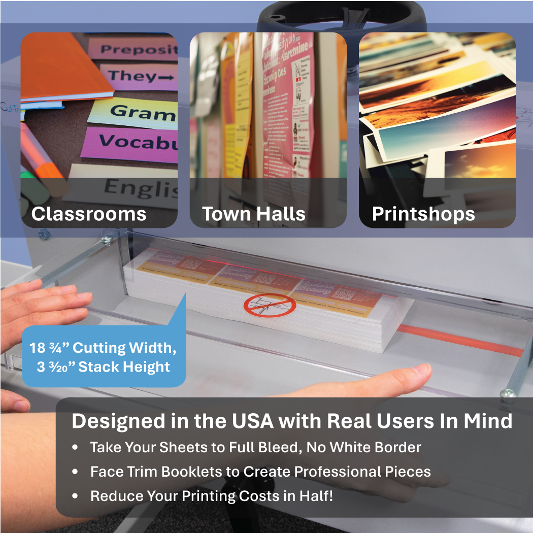 Formax Cut-True 16M Manual Guillotine Cutter has set a new standard in the realm of high-volume paper cutters, combining efficiency, ease of use, and safety. The standout features of this cutter include an impressive 18.7” cutting width and a substantial 3.15” cutting height. It effortlessly handles large stacks of paper that would challenge other machines, ensuring a smooth cutting operation in a single pass.