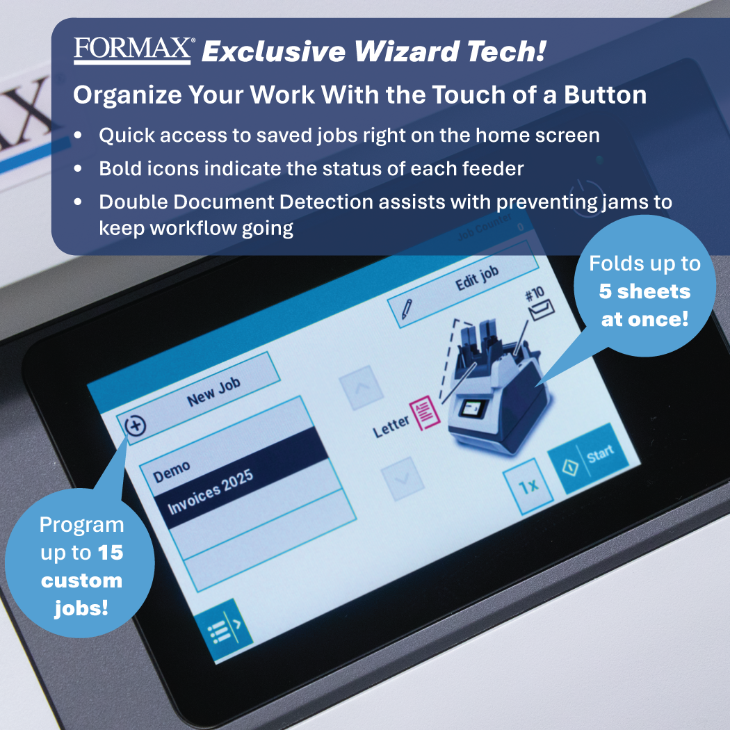 The Formax FD 6104 Low-Volume Automatic Folder and Inserter is a top-of-the-line solution for businesses seeking efficient and precise folding and inserting capabilities. With a 5” color touchscreen interface, this inserter can produce up to 1350 filled envelopes per hour, making it a valuable asset for streamlining mail processing operations.